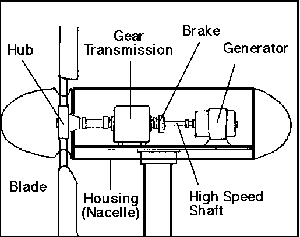 attached to a high speed shaft which turns a generator that makes electricity.