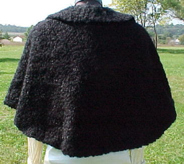 This 1940's/50's poodle cloth wrap is clean, cute and comfortable. �The large shawl-type collar hides two comfy pockets! �So clever! �Look closely at the side photo (above) and you will see that I slipped the "hand" of the gown into one of these hidden pockets. �In excellent condition. �Very black. �No moth holes or pulls. �Lined with black satin. �Just great!