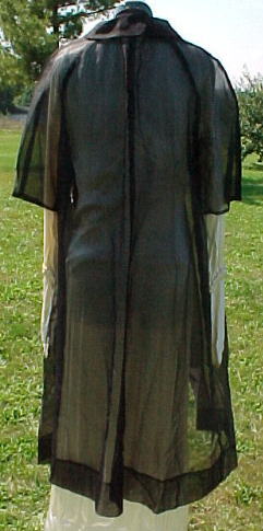 You will truly be lucky if you are the recipient of this unusual 1950's sheer organza opera coat! �In A+ condition ~ not a hole, snag or pull in it! �Large tie ends at neck can be secured into a bow or left softly looped. �Peter Pan collar. �This opera coat is completely open (with the exception of the bow) to allow it to float open as you walk. �Extremely feminine and perfect for those summer night concerts! �No inside tags or labels. Much nicer than the photographs show because the breeze caused it to move easily.