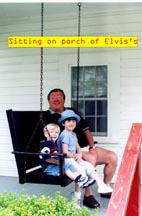 Gordie (Lana's dad), Mackenzie and Will of the porch of Elvis Presley's birth place.