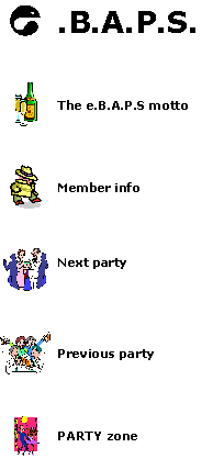 On these pages you will find all essential information for the next e.b.a.p.s. party, pictures from the previous party and confidential member information.