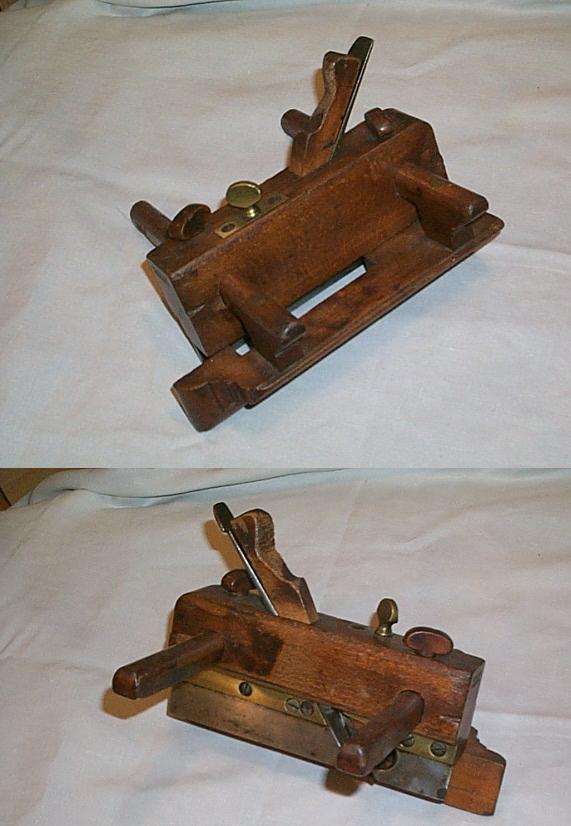 Wooden plow plane by M. Copeland. In the "Yankee" style with wooden screws to lock the arms. $85.00 Ordering Return to Wood Planes for Sale menu