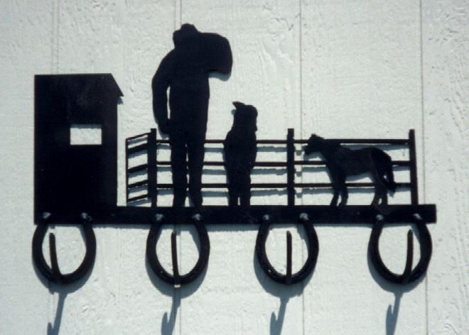 These Racks are about 12" by 12". Will hold 1 rope and a pair of spurs on the hooks. These are made of 1/8" steel plate. Price is $35.