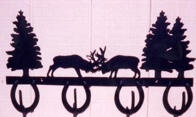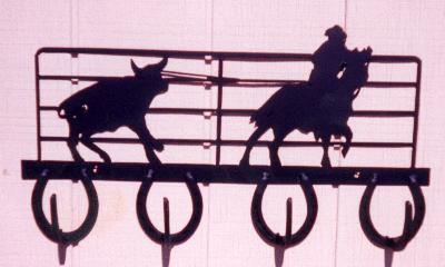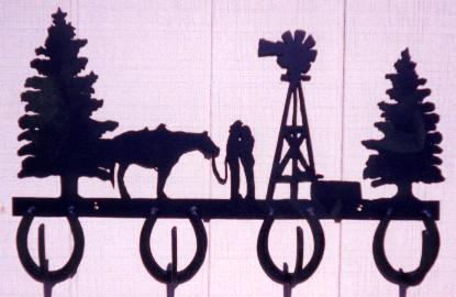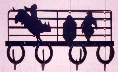 These are just a few of the coat rack designs I have. If you don't see what you're looking for , ASK. I probably have it. I do have a lot of rodeo designs. They are all 26" long. Vary in height from12" to 14". Mounting holes at 16" spacings. Mounting screws included. Price $ 135 ea.