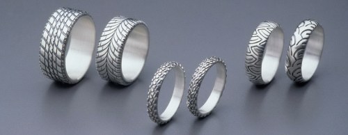 Tire Rings are available in sizes 6-13, including half-sizes; in .925 Silver, 14k/18k Gold and Platinum. Delivered in one - two weeks; three weeks for Gold and Platinum.