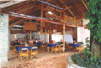 Exoctic bird reside near a cascading fresh waterfall - swimming pool, where a restaurant patron may enjoy a special rum drink and tostados, quesodillas or huevos Rancheros while overlooking the beauty of a reflected sunset and moon rise over Verde Island across the bay.