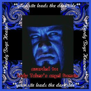 In this chamber you will find awards posted here for your viewing pleasure, Thank yous go out to people gave me these awards,i'm very honored to win these awards!!