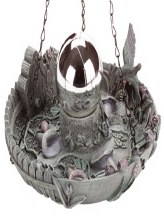 branches for privacy. 10 1/4" x 4 1/2" x 9 1/4" it hangs from a black metal chain to a