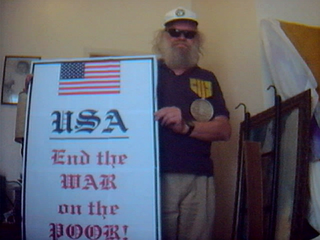 Concerning the beating death of a homeless man at the Redway, California post office there is a plea bargained sentence now; 11 years, 85% of which should be served. See the article in the Eureka Times Standard. I have been following this "story" on my original Humboldt Hate Crime Log page. Concerning the war on the poor and their massive imprisonment I could not resist a one man picket of the local courthouse on 5th street, hiway 101 north, here in Eureka. I took pictures before i went down town to do this with my web cam here is me displaying one side and me displaying the other. I got a lot of positive feed back and one "F--- YOU" from a guy in a giant new pick up truck. I have a few links which are helpful and hope to develop more links to national and international anti hate crimes pages and other civil rights pages: