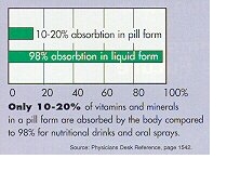 that vitamins and minerals in a pill form are only 10 to 20% absorbed by the body. That