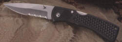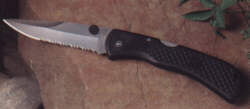 Measures 63/4'' open and 4" closed. This serrated blade knife