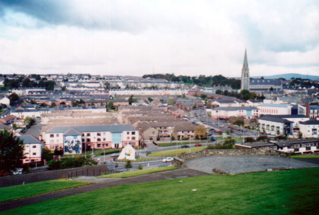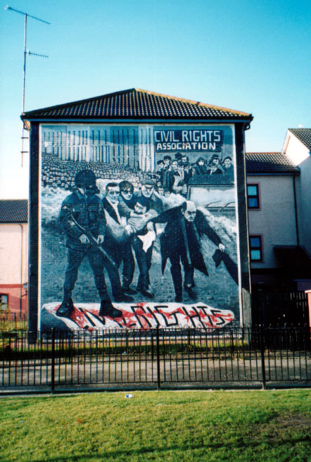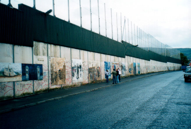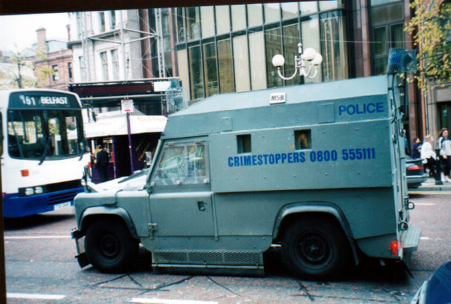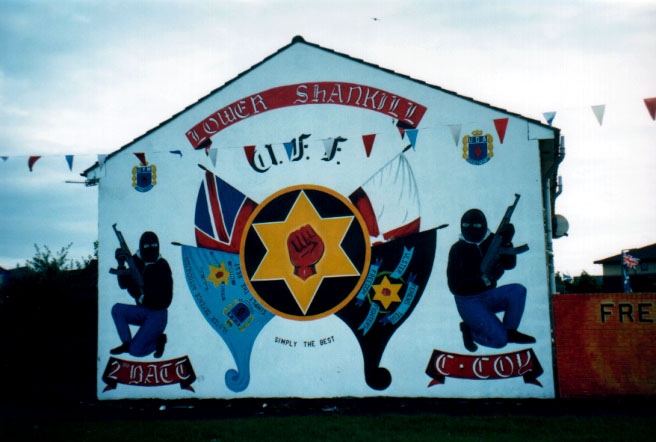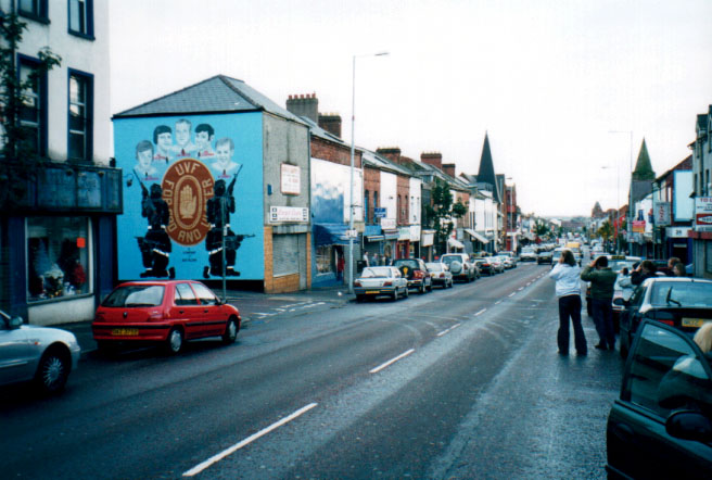 NORTHERN IRELAND Belfast city Police Queens Bridge Sinn Fein HQ Black cab tour Giants Causeway Ulster Freedom Fighters, Skankill road. Skankill road Belfast wall Londonderry (Derry)