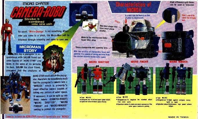 MC-05: Microx (MicroWinder, MicroFinder, MicroShutter), a camera that changes into three robots. While it was not sold directly