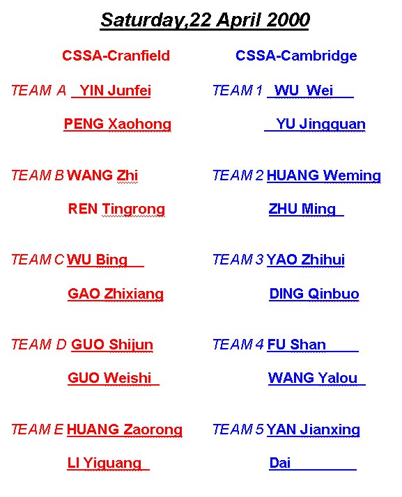Men Double: DING Qingbo/ HU Wei Cambridge