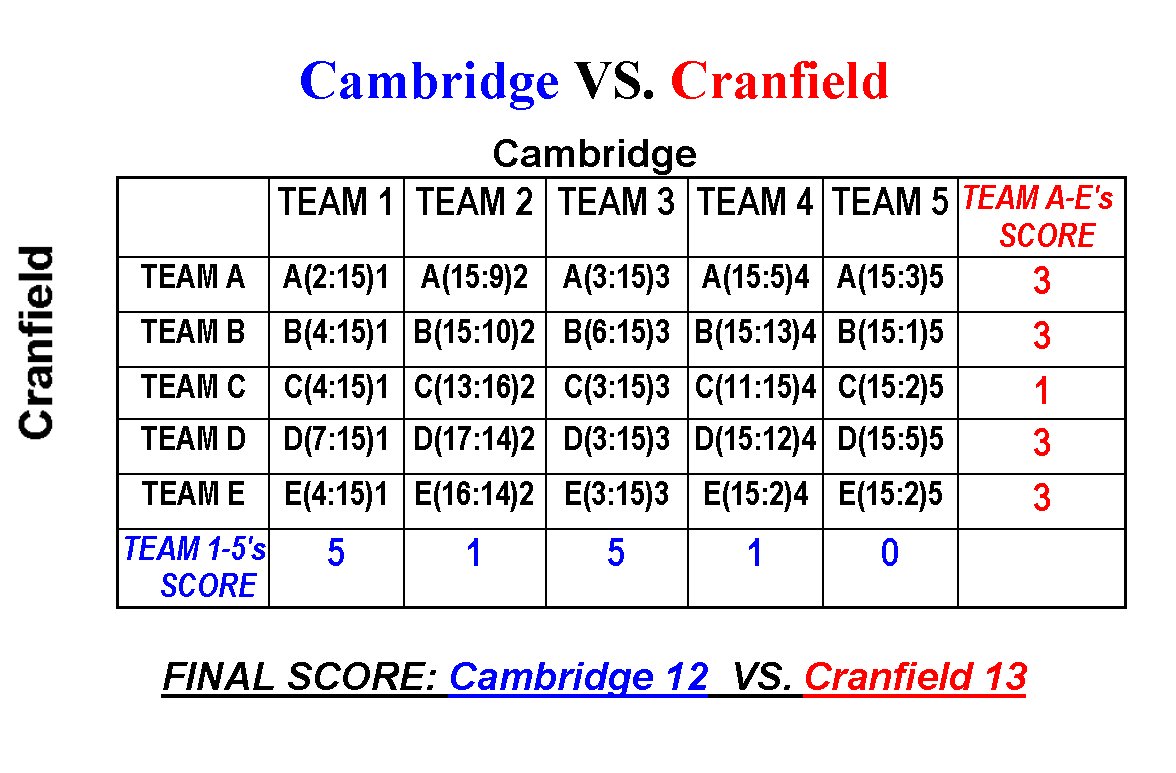 This is our second victory in our badminton competition. The first one was against Cranfield Badminton Club, the result was: