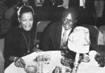 Billie Haliday and Miles Davis having dinner together.Not necessarily all from the forties, these artists did however have their roots there.Nina Simone and Billie Haliday sang about love and loss and both had quite sad lives. Nina Simone's song entitled "Strange Fruit" laments the hanging of black people by the Ku Klux Klan and much of her later life was dominated by political issues. |