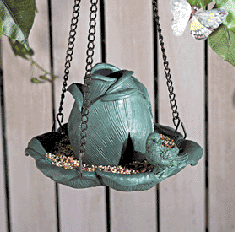 25083 What bird could resist this rose-shaped feeder of alabastrite? Easy to fill from the top, with "automatic" spill-feed into the trough. Attractive, and simple to use. 8" diameter, 4 3/4" high. $12.95 |