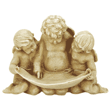 30157 Three pudgy cherubs, reading from a scroll, make up this distinctive, stone-finish, alabastrite, garden bird feeder. 7 1/4" 4 1/2" x 5 1/4" high. $9.95 |