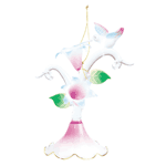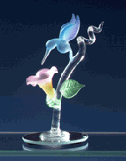 28198 A beautiful rose of frosted glass attracts a hungry hummingbird. Pink mirror base. 2 5/8" x 1 3/4" x 2 7/8" high. $9.95 |