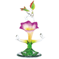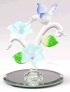 29213 A sip of delicious nectar is the aim of this diminutive glass hummingbird. The arrangement sits on a glass base and adds elegance and grace to any home. 3 1/2" x 2" x 4" high. $14.95 |