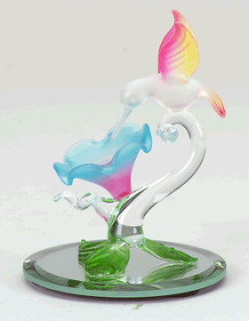 28199 A frosted glass meadow is where you'll find this dainty, colorful butterfly. Pink mirror base. 2 1/2" x 1 1/2" x 2 5/8" high. $9.95 |