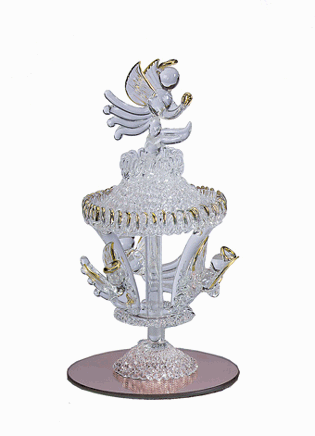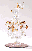 29205 Four gold-trimmed, spun-glass, angels float lightly around this heavenly merry-go-round in joyous abandon. 6" pink mirrored base. 3 1/8" deep. $19.95 |