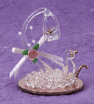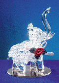 23562 A trumpeting elephant of delicate spun-glass, decorated with a ribbon and rose on a pink base. 2 5/8" at the head. $9.95 |