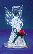 24549 A heavenly creation of spun-glass, this angel offers up a prayer and a bright red rose on a green bow. 3 1/2" high. $9.95 |