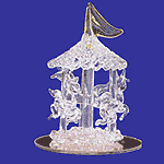 24553 Three dainty carousel horses promenade on this spun-glass merry-go-round. On top, a yellow flag waves in the breeze. 2 3/8" base, 3" high. $9.95 |