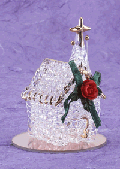 25063 A quaint little chapel of spun-glass with a golden cross and floral decoration. Mirror base. 2 1/2" diameter, 3 1/2" high. $9.95 |