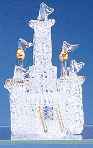 29500 In delicate spun-glass, this castle with gold-plated details brings back thoughts of King Arthur and days of yore. 2 1/2" diameter x 4 1/2" high. $12.95 |