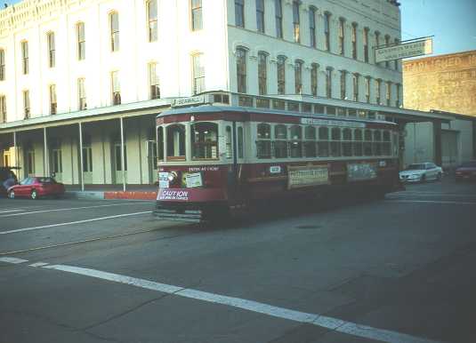 Le tramway qui arpente les vieux quartiers de la ville de Galveston. Trouvant cette ile fort a notre gout, nous avons decide de rester ici le lendemain pour visiter Moody Gardens |