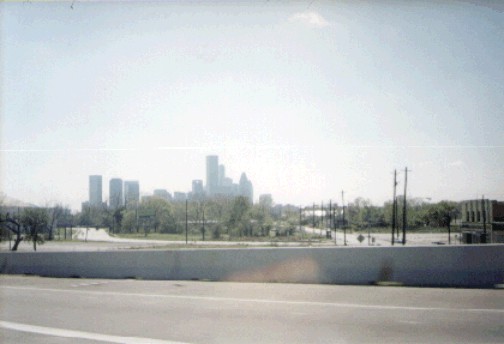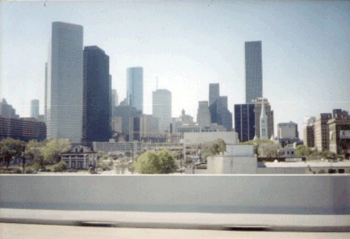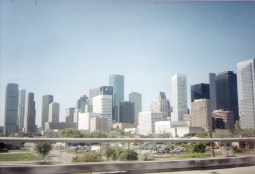 Arrivee a Houston. Le centre-ville surgit tel un champignon. |