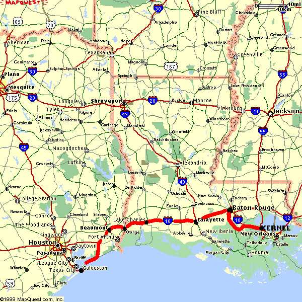 | Un rapide survol des bayous sur l'autoroute. | ![]() |