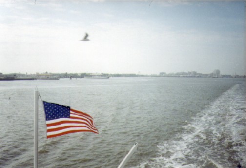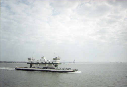 Nous quittons l'ile de Galveston depuis sa pointe EST a bord d'un ferry-boat. Duree de la traversee: 15 minutes, le temps de faire quelques photos. |