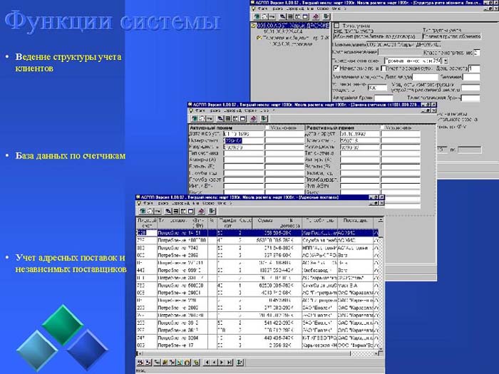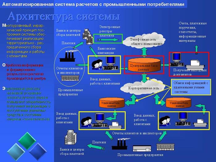 Многоуровневый, иерархический принцип построения системы обеспечивает реализацию территориально - распределенного сбора информации и работы с клиентами.