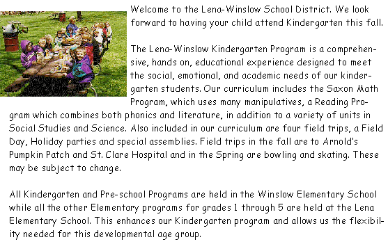 At the present time, we have four Kindergarten classes in Winslow. They are taught by Mrs. Benters, Mrs. Fryer, Ms. Gullickson, and Mrs. Noller. If you have any questions, they will be gladly be answered either at Registration or at Open House in August.