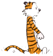 Calvin & Hobbes' first cartoon together. Published 11/18/85.