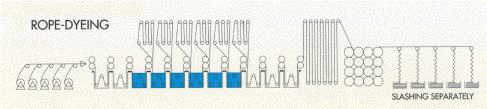 Loop Dyeing: Instead of 6 Indigo dye baths with