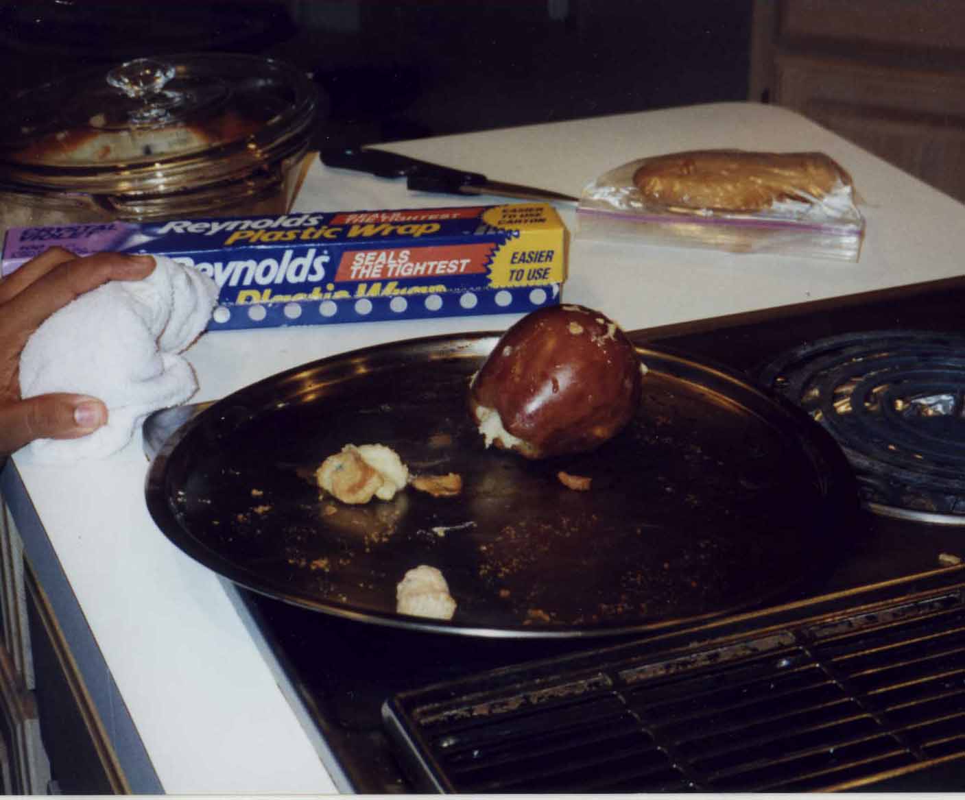 Hunaid's apple filled with cookie dough and cheerios...it smelled worse than it looks...