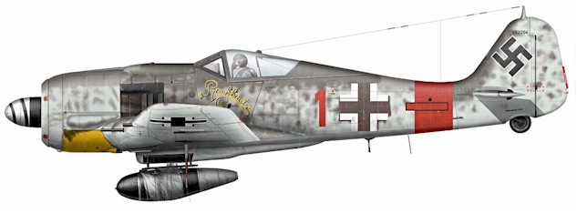 FW 190 A "rote 1" "Rauhbautz VII", Klaus Bretschneider, 5./ JG 300, 1944 (by C. Sundin)