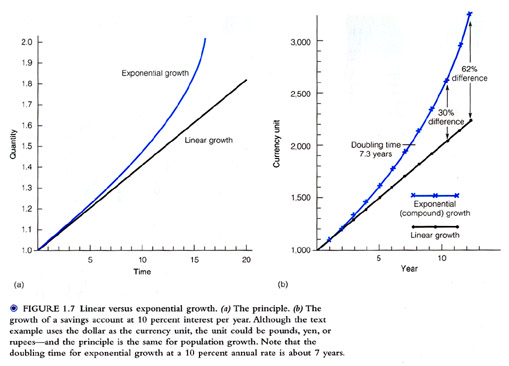 e.g. 2% growth does not sound very much, but results in a doubling time of 35 years.