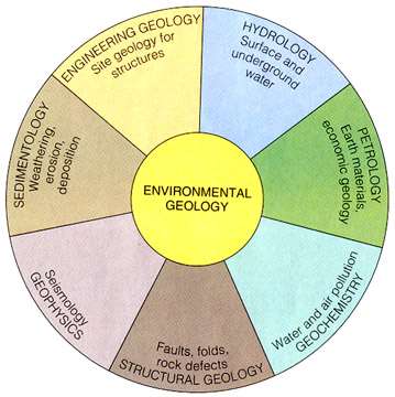 -Environmental geology encompasses all of the traditional branches of geology as shown