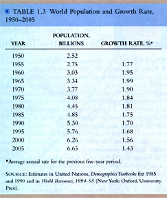 The global growth rate (%) increased to a high of 2.06% in the 1960s (pg 8);
