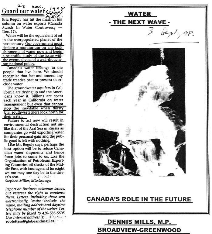 - The exceptionally important issue of possible export of Canadian freshwater.