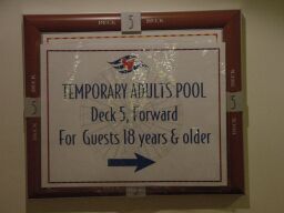 | Directional sign shows the way | Crew area on the way to the pool |
