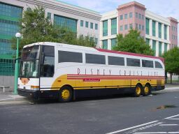Disney offers transfers on its buses as a part of all its cruise packages. The buses are quite nice, with reclining seats and onboard restrooms, and they show videos to help pass the time. Some of the drivers are quite entertaining, while others just concentrate on driving. If you purchase transfers with Disney, you will meet the bus at your hotel if you are on a land/sea package, or else you will pick it up at the far end of Terminal A in the airport (there are Disney reps. scattered around to direct you if one is not there to meet your plane).