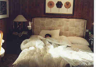 | the master bedroom with Howard's grandson under the covers |