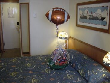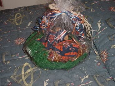 | Above, the neat custom Bears-themed basket that I order for hubby for our 10th anniversary cruise. |