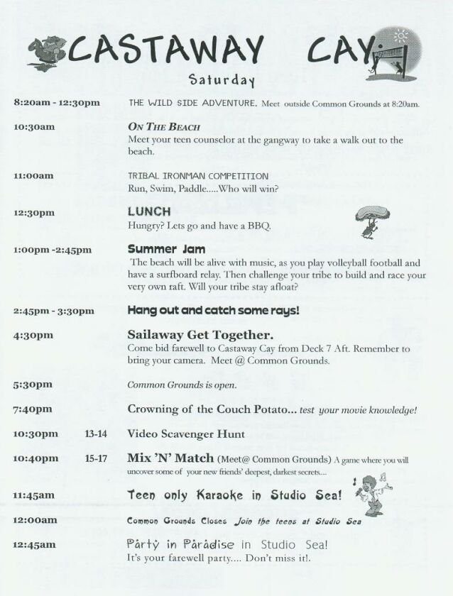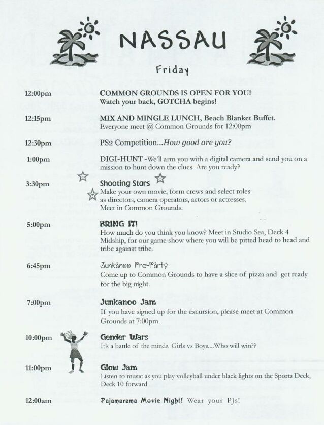 times and activities frequently, so it is likely that your cruise will be somewhat